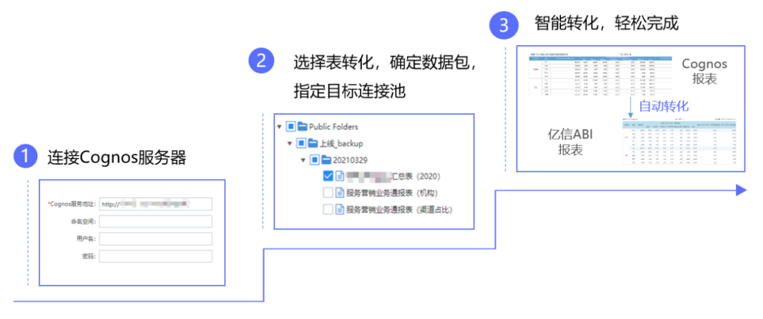 在企業加速數字化轉型的今天,又有“信創”這個大的應用背景,國產BI軟件能否堪當大任成為很多人的疑問? 前段時間正好接到一個咨詢,為響應國家安全可控的要求,公司所有的基礎設施、應用軟件都要求國產化,目前正在找一款國產的BI工具替代原有的Cognos工具,但是又有如下擔憂: “ 擔憂一:原來Cognos工具建設的上百張報表,怎么能快速遷移到新工具上呢?如果重新制作,那要耗費太多精力了。 擔憂二:報表遷移到新BI工具中,底層數據模型可以直接復用嗎? 擔憂三:那更換新BI工具,軟件操作習慣肯定有變化,學習成本是否高呢? 擔憂四:新BI工具對國產化服務器、CPU、數據庫、操作系統等是否能完全兼容呢?能否在信創環境下正常應用? ”       聽到這些聲音,一種使命感油然而生。 為了幫助更多的客戶快速實現國產化BI替代,我們潛心鉆研了一鍵替代Cognos報表的關鍵技術,完美解決替代的過程中的所有難題,最終形成了一套完善的解決方案,不僅一鍵替代Cognos,還能很好的解決Cognos在數據量大性能慢、無法實時分析、二次開發困難、可視化效果丑等問題。 話不多說,上干貨! Cognos一鍵替代解決方案 一鍵替代Cognos,三步完成報表遷移 為解決重復做表與建模問題,通過億信華辰獨家技術實現Cognos報表的批量轉換、自動轉換,只需三步完成Cognos報表到億信ABI報表的轉換,全程只需幾分鐘。                    完美適配Cognos各種報表、模型轉換 億信ABI覆蓋Cognos轉換各種場景,包括各類報表(查詢表、復雜表、動態報表等)、模型(SQL模型、CUBE模型、模型表等)的轉換都能完美適配,提供批量轉換功能,大大提高轉換效率。         全面兼容信創環境,安全可控 15年技術沉淀,自主研發的億信ABI掌握核心技術,自主可控,安全可靠。同時作為信息技術應用創新工作委員會成員和信創的積極推進者,億信華辰產品億信ABI已經完成與國內主流芯片、操作系統、數據庫、中間件等上百家產品的適配工作,完全兼容、性能穩定是共同的結論。