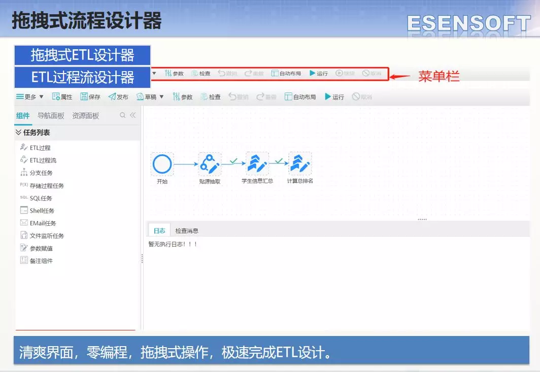 ETL通常通過圖形化的配置方式,簡單,靈活,使得用戶無需過分關(guān)心數(shù)據(jù)庫的各種內(nèi)部細節(jié),而專注于功能。