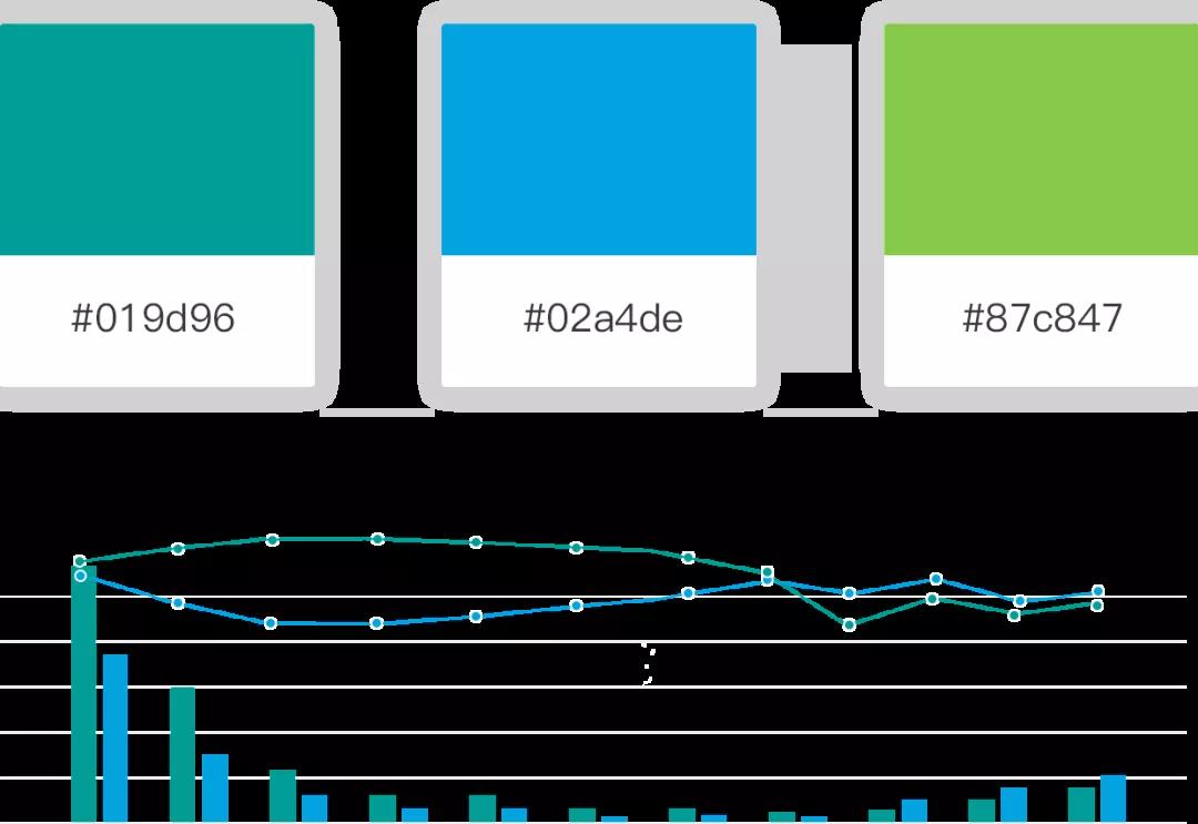 除了與背景的配色對比外,圖表本身的顏色選擇也很重要,要利于業務信息傳達。選擇的顏色不要過于相近,這樣不利于數據間的區分,會降低閱讀舒適感。