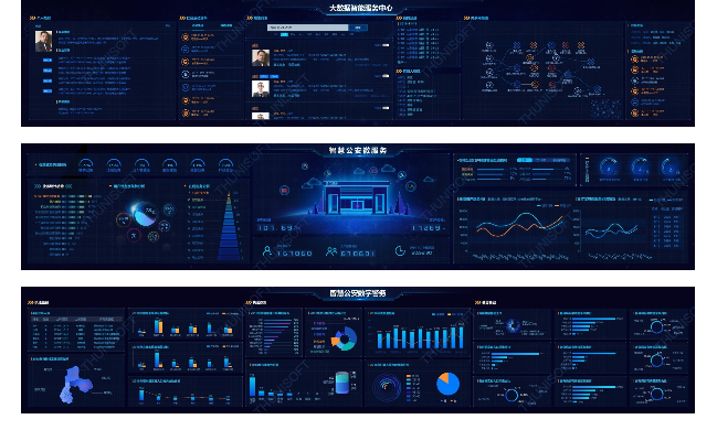 在大數據時代,只有通過適當的可視化工具來展示和表達數據,才能更直觀地向用戶傳達數據的價值??梢暬笃辆褪且环N非常有效的數據可視化工具,它可以將業務的關鍵指標以可視化的方式展示到一個或多個LED屏幕上,不僅使業務人員能夠從復雜的業務數據中快速、直接地找到重要數據,而且能對決策者起到輔助作用。 什么是大屏可視化 數據可視化就是通過圖形設計來表示枯燥的數據,從而實現更準確、更高效的數據分析和表達。即通過圖形手段清晰有效地傳達和交流信息。一方面它允許用戶挖掘數據中隱藏的價值。在新技術的支持下,數據可視化除了具有“可視化”的特征外,還具有“可交流”和“可互動”的特征;另一方面,可以使數據的呈現更加直觀,方便用戶查看。 大屏可視化工具應用場景 隨著大數據的發展,可視化大屏在各個行業的應用越來越廣泛,尤其是在商業、政府、制造、金融等行業的業務場景中。它具有分析判斷、日常監測、展示匯報、應急指揮等多種功能,在提高科學管理方面發揮著重要作用。 酷屏大屏可視化平臺,是億信華辰自主研發的新一代數據可視化產品,開箱即用,可靈活、快捷地搭建專業、炫酷的可視化大屏,覆蓋企業匯報、客戶參觀、指揮監控中心等場景。內置豐富行業模板,精致實用組件,讓數據“躍然屏上“,釋放無限價值。并已經應用到教育公安、政務云等場景。 校情決策支持平臺 為了輔助校領導層在宏觀層面掌握校園數據,分別從招生就業、學生工作、國有資產、圖書典藏、科研成果、后勤服務、發展規劃、財務、教務、人事以及全校核心數據等11個方面全面展示學校數據,橫向覆蓋了學院各類數據信息和各部門的工作內容。通過對接校方數據中心保證數據事實的準確性、及時性,為學院管理團隊科學決策提供了有效的數據支撐。 智慧公安分析系統 智慧公安實戰應用包括了智慧搜索、智慧建模、智慧服務、智慧監督、智慧標簽、智慧小區、智慧管控以及智慧監測,實現個人檔案的查詢,同時關聯社會關系和活動軌跡并繪制出關系網絡圖,通過建模顯示各模型使用情況和資源訪問量、訪問趨勢,進行在線業務分析,各類警務案件指標分析,根據標簽標準生成人員畫像,通過重點人員異常軌跡進行警情監測,根據熱點追蹤進行傳播路徑分析,實現公安智慧化管理。 政務云分析平臺